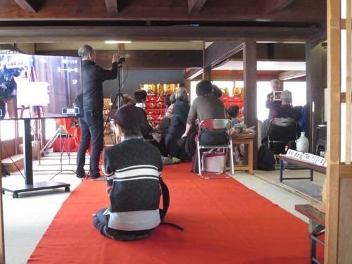 2月23日(祝)、古民家に多数の参加者が集い、「ひな人形の世界へようこそ」と題した講演会を開催しました。講師は、長年ひな人形を研究し続けてきたひな人形愛好家のご佳人です。講演会は座敷だけでは入りきらないほどの盛況ぶりで、土間エリアにもライブ中継を行いながらの実施となりました。
