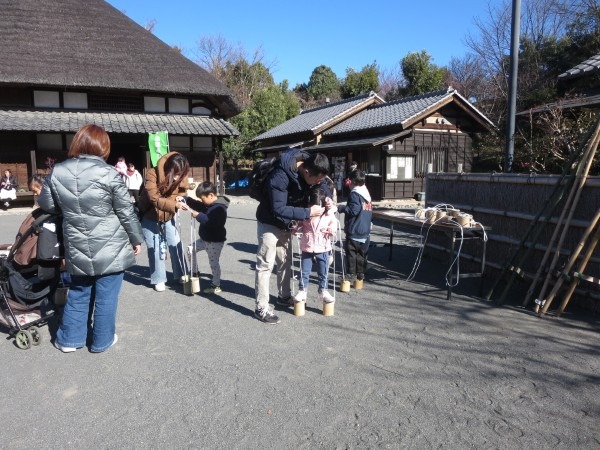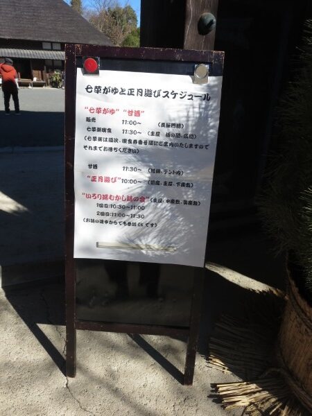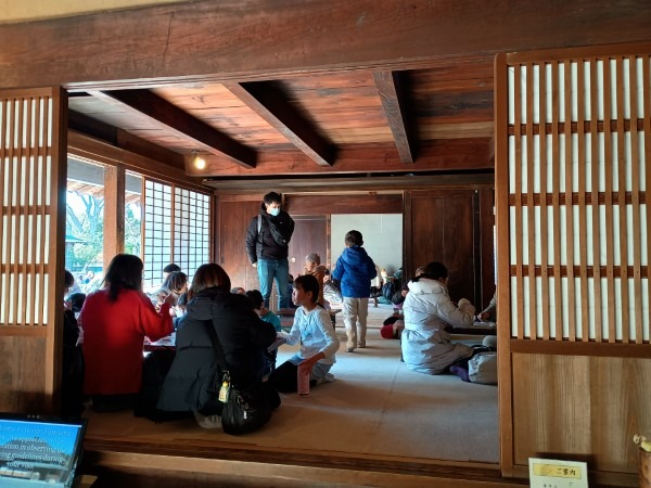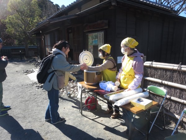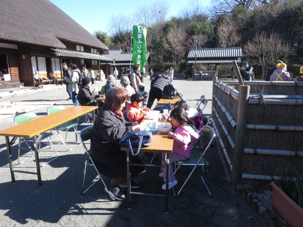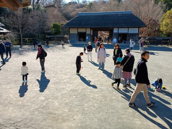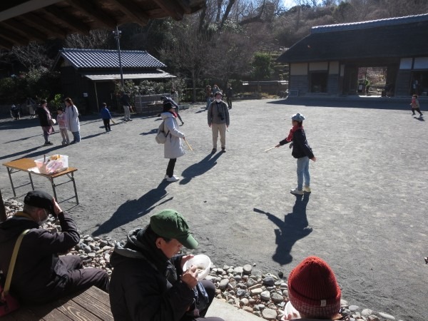 令和8年の最初のイベント、七草粥と正月遊びのイベントが、1月10日(土)快晴のもとでおこなわれました。途中、寒風が吹き荒んでテントが吹き上がったり、古民家に枯れ葉がいっぱい吹き込んだり、天気に翻弄された面もありましたが、中庭も古民家もどこもかしこも大勢の笑顔でいっぱいの一日でした。来場された皆様、今年も本郷ふじやま公園をごひいきにお願いします。ボランティアの皆様、年初よりエンジン全開でお疲れ様でした。