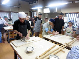 | 6 | そばうち塾 教室風景 | ![]() | 初心者でも、楽しく、美味しい「そば」を打てる楽しさがあり、試食もあり、打つ、食べる、お土産付きと三つの楽しみがあります。 |