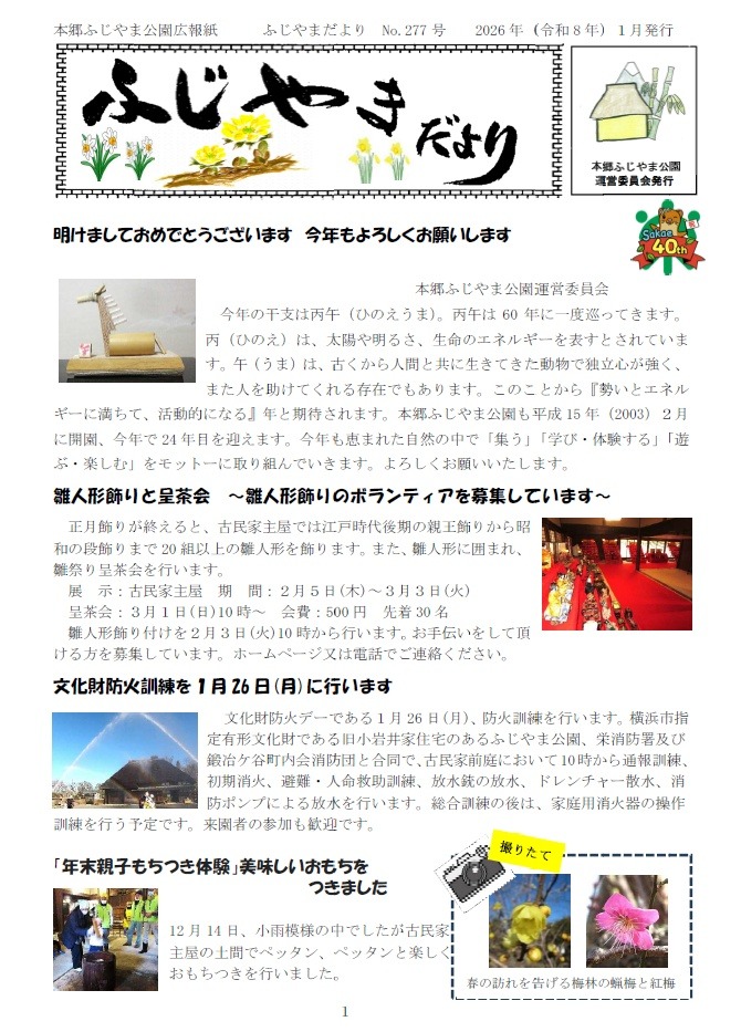 ふじやまだよりの最新版 第277号(令和8年1月発行)はこちらです。