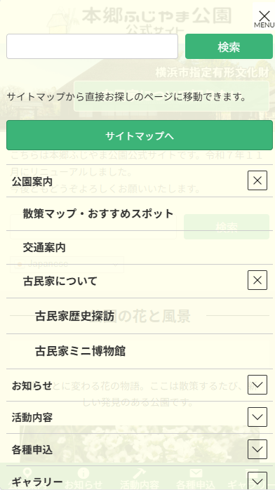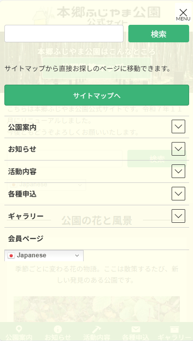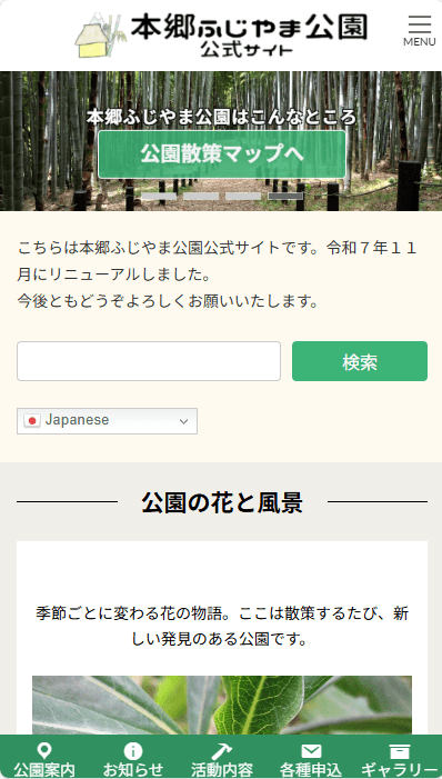 11月22日に、本郷ふじやま公園公式サイトをリニューアルしました。