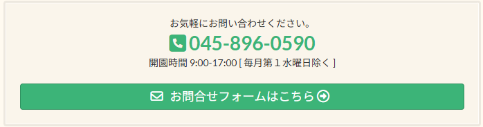 トップページの下の方(フッターの上)と、各種申込メニューの下に、お問合せフォームへのリンクを設置しました。