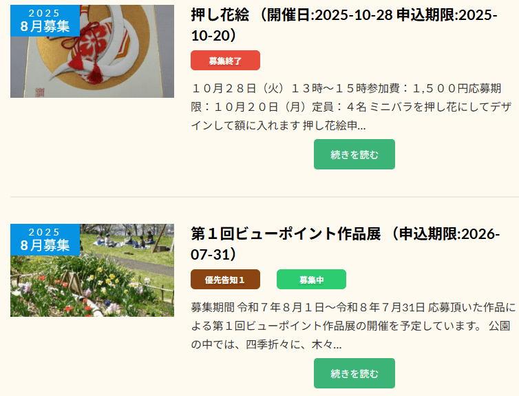 さらに、記事中の[募集中][募集終了]などのボタンを選択すれば、そのカテゴリーのみ一覧で表示されます。